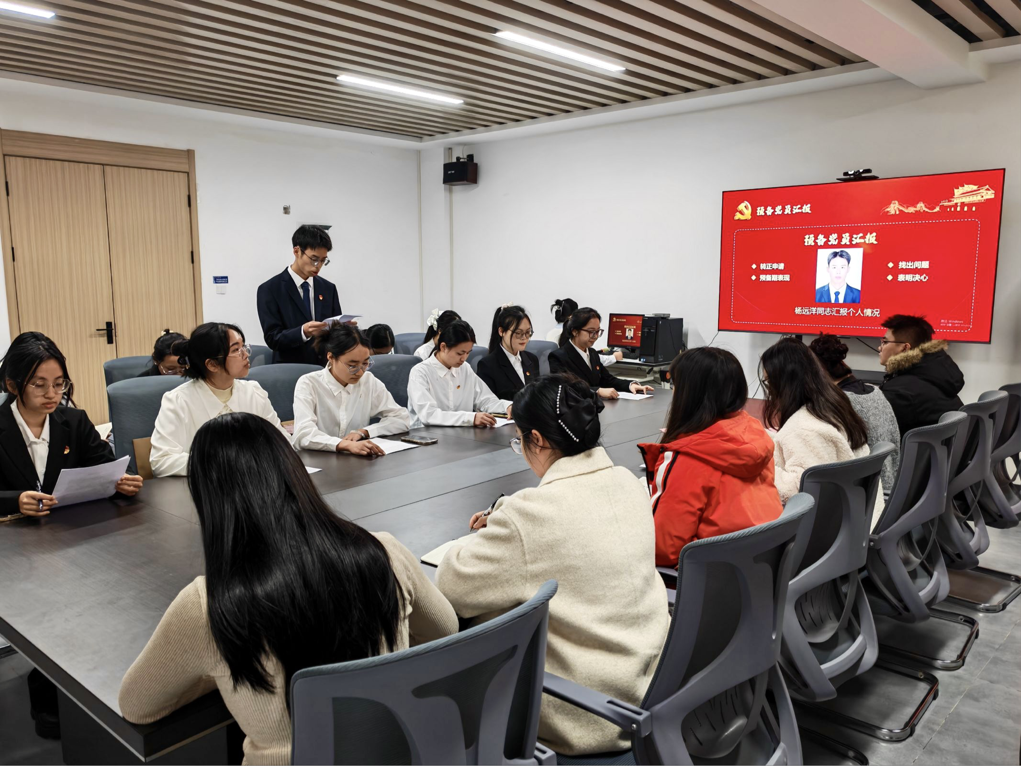 2025年12月5日,学生第四党支部于16栋144会议室召开预备党员转正大会。本次大会由支部书记陆柳萃同志主持,支部全体党员及预备党员参加,共同审议了杨远洋等6名预备党员的转正问题,为党组织注入新鲜血液。