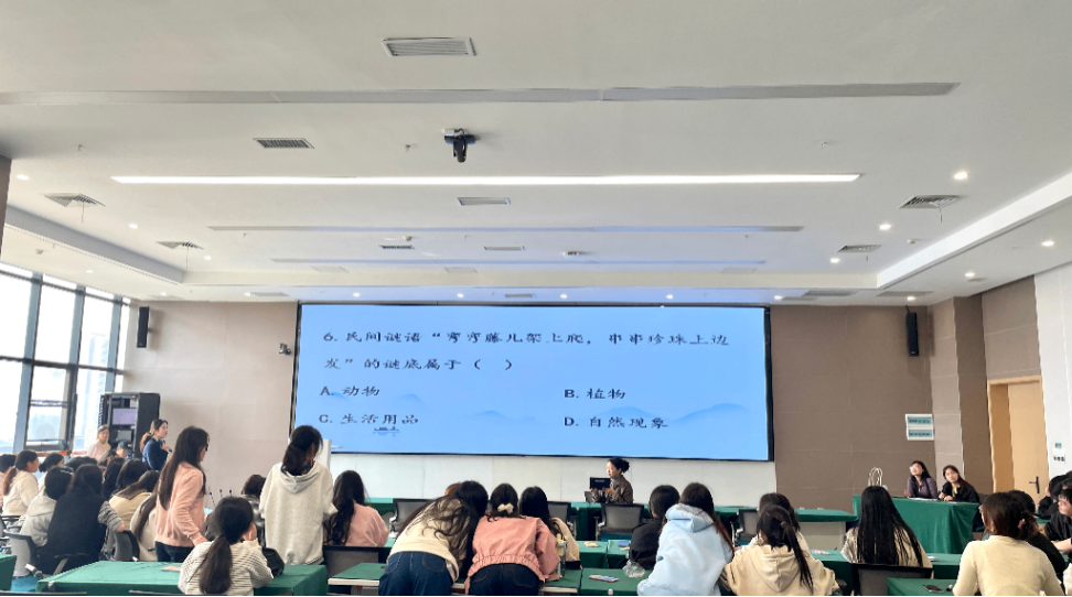 本次竞赛采用现场答题的形式,参赛选手在规定的时间内根据给定的题目作答。主要有四个环节,分别为第一环节“诗词接龙”、第二环节“争分夺秒”、第三环节“趣味猜猜猜”和第四环节“诗词来找茬”。