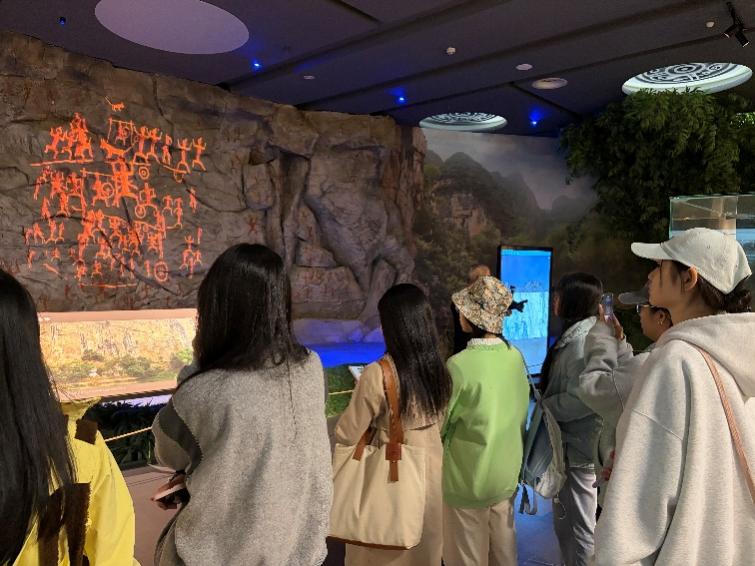 广西民族博物馆位于南宁市邕江之畔,是一座集收藏、研究、展示与教育于一体的民族文化专题博物馆。馆内以丰富而系统的民族文物藏品为依托,通过多元展陈方式,生动呈现广西各民族交往交流交融的历史脉络与文化特色,为翻译实践教学提供了鲜活而真实的语料环境。抵达博物馆后,学生们在老师的引导下参观了“BEIXNUENGX(贝侬)——壮族文化”、铜鼓文化陈列和百年老物件等核心展区。