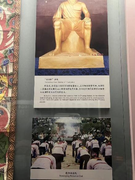 走进壮族文化展,布洛陀创世神话的图文展板、刘三姐歌谣的音频资料、壮族先民的生产生活器具,全方位展现了壮族文化的丰富内涵。同学们聚焦 “布洛陀”“贝侬”“刘三姐歌谣” 等核心文化符号,展开深度翻译实践。在“昨日重现——百年老物件展”展区,同学们围绕老物件背后的生活场景翻译展开讨论,思考如何通过语境补充、文化注释等方式,让英文读者理解“老火灶”“织布机”等传统器具所承载的生活智慧。学生在实践意识到翻译不仅是语言的转换,更是文化的解码与传递。比如“壮锦”的翻译,不能只停留在字面,还要翻译出其深层内涵,这样才能真正实现文化互通。