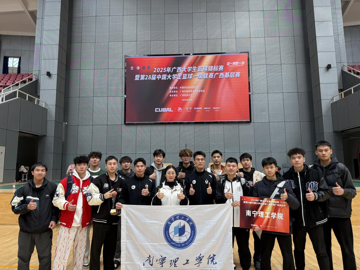 2025年广西大学生篮球锦标赛暨第28届中国大学生篮球一级联赛广西基层赛于12月月底在广西民族大学思源湖校区举行,我校男子篮球队在领队李梅、教练员何延锦、黄自源的带领下再攀高峰,荣获甲组季军,创造历史最好成绩。